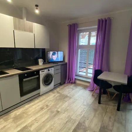 Lägenheten är utrustad med kokvrå, mathörna och soffa samt har en kokvrå med vattenkokare, ugn och tvättmaskin. Lägenheten består av 1 sovrum och 1 badrum med separat toalett och dusch. Sängkläder och allergivänliga kuddar finns på lägenheten Apartamenty Bezrzecze.